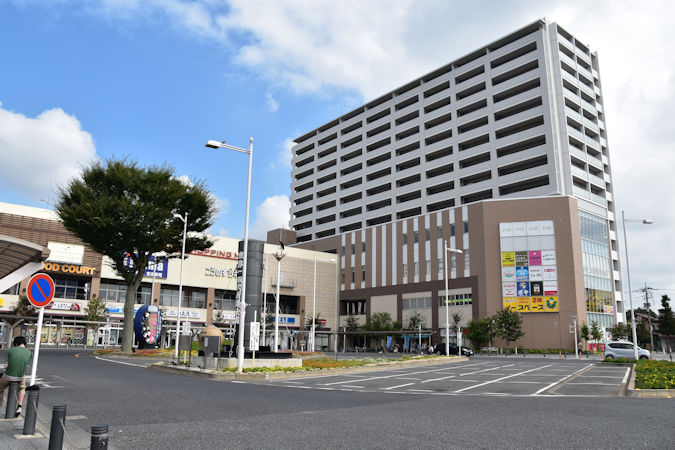駅前にある四尺玉モニュメント。2014年(平成26年)10月11日「第13回こうのす花火大会」で打ち上げられ、「世界一大きな打ち上げ花火」としてギネス記録に認定。煙火筒は実際に使用されたもの。
