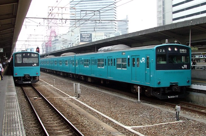大阪駅に停車中の福知山線の207系(旧塗装時代)。