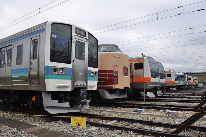 JR中央線の車両たちが集結する豊田車両センターを付近に擁する駅で、当駅を起終点とする列車が多い駅。島式ホーム2面4線を持つ橋上駅舎であるが、崖地に造られているため、上写真の北口から改札へは階段を降り、さらに南口へ階段で降りていく構造になっている。(写真・解説:裏辺金好)
