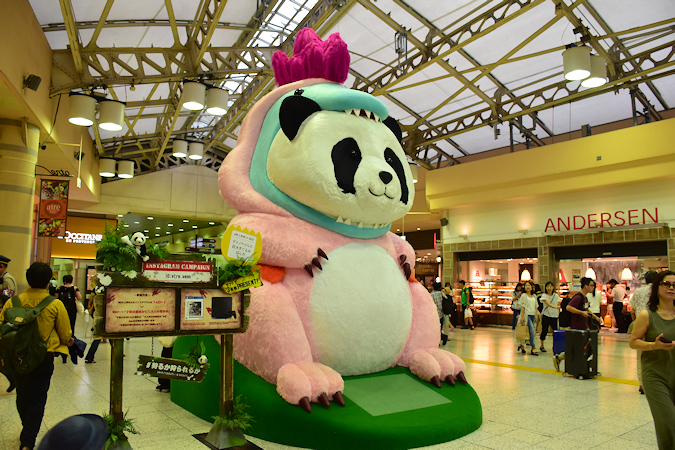 銀座線ホームに停車中の1000系「くまモンラッピング列車」。(撮影:裏辺金好)