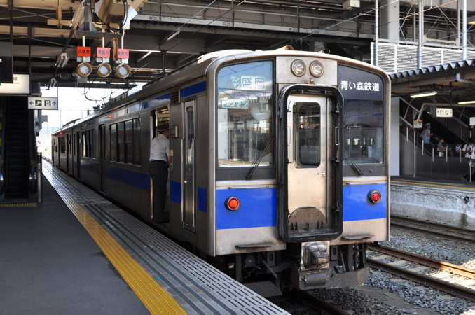 青森駅で出発を待つ、青い森鉄道の青い森701系。