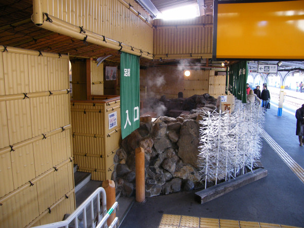 諏訪湖観光(歩いて約7分、諏訪湖祭湖上花火大会などは多くの人が訪問します)、上諏訪温泉、高島城、霧ヶ峰高原など、諏訪地域有数の観光の拠点。駅舎はそれほど大きいわけではありませんが、全特急列車が停車します。また、駅ホームには足湯があり名物の1つ。(撮影&解説:裏辺金好)