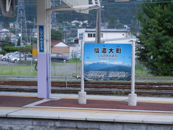 大町市の代表駅である。立山黒部アルペンルートの起終点ともなっており、当駅からは関西電力扇沢駅への路線バスが発着する。大糸線の運行上の拠点となっており、当駅を始終着とする列車も多い。当初は当駅と松本を結ぶ信濃鉄道の駅として開通したが、後に国鉄が当駅から糸魚川を結ぶ大糸線の建設に着手し、1929(昭和4)年に一部開通、その後信濃鉄道が国有化され、完全に国鉄(→JR)の駅となった。駅舎は木造平屋で、2010年のリニューアル時に山小屋風の外観となっている。駅舎内にはみどりの窓口や観光案内所、コンビニ、駅そばがある。