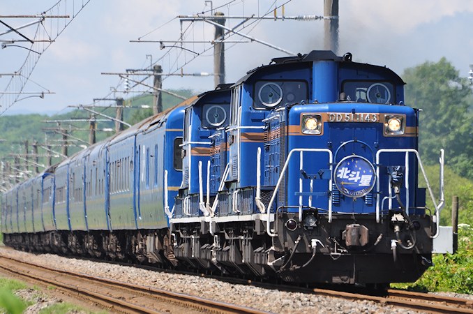 白老〜社台を行くDD51形+24系による寝台特急「北斗星」