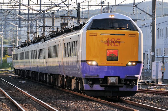 木古内駅に入線する485系3000番台による特急「白鳥」
