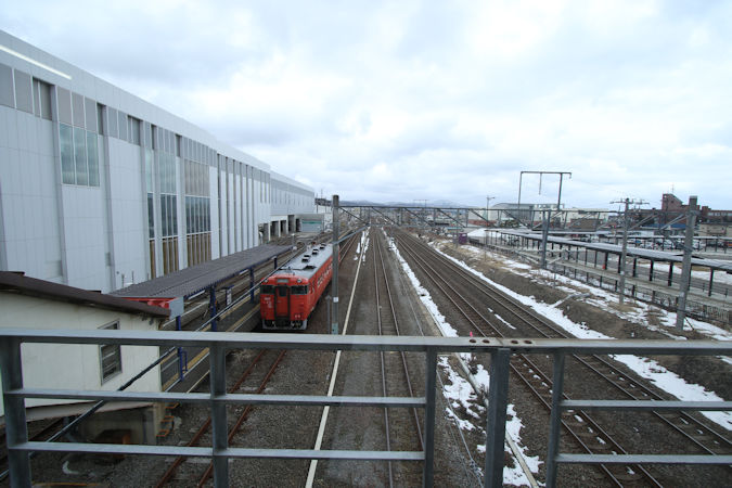 木古内駅構内(函館方面)。普通列車は函館方面、江差方面ともにキハ40系を使用。