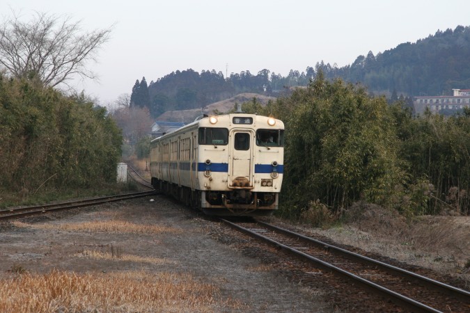 肥薩線との接続駅、吉松駅で出発を待つキハ40形。