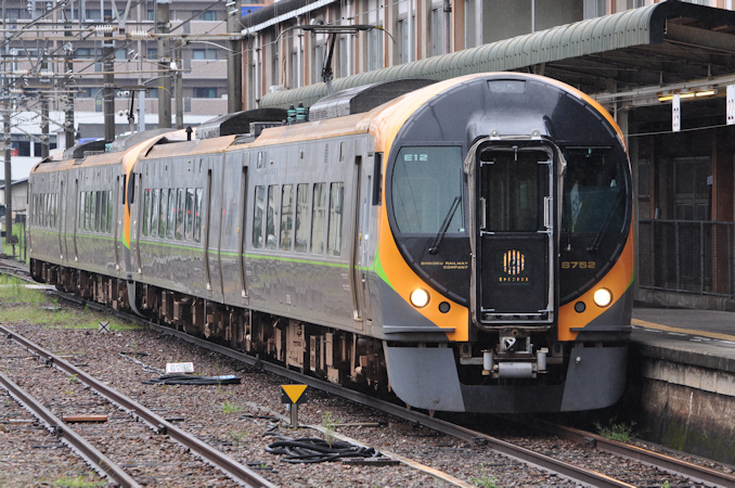 愛媛県の県庁所在地である松山市の玄関口の1つだが、駅舎は戦後に建てられた味気の無いもの。2000(平成12)年にレトロ調にリニューアルされたことにより、多少面目を一新した。中心市街地からは大きくは離れていないものの、中心市街地西端に位置しているため、駅前を発着する伊予鉄道の路面電車に乗って、松山市駅や大街道へ出るのが無難。(撮影&解説:裏辺金好)