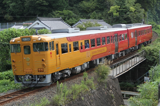 五郎〜春賀を走行するキロ47形「伊予灘ものがたり」。予讃線に登場したランチクルーズトレイン。