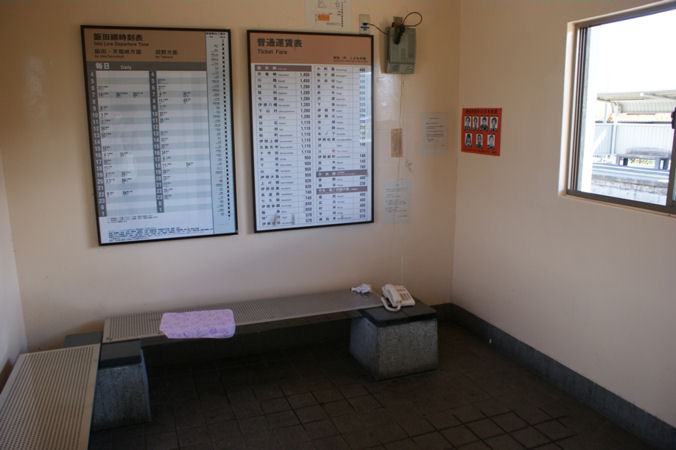 飯田線内で最標高723mに位置する駅で、列車交換が可能。シンメトリーの形をしたコンクリート製の待合室がある。