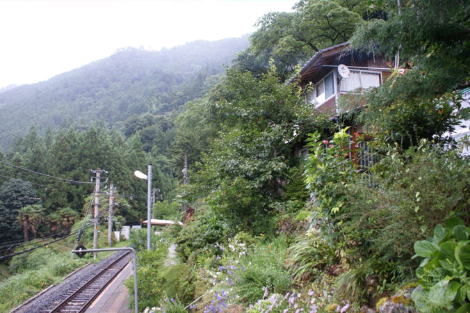 単式ホームがある無人駅で、長野県の最南端駅。崖にへばりつくようなところにあり、秘境を思わせるが、駅前には民家もあり、駅までの車道も通じている。