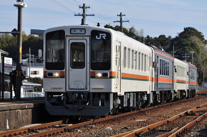 開業当時からの木造駅舎を持つ駅で、ホームは1面2線。2013(平成25)年3月16日改正までは、1日1往復であるがDD51形牽引の貨物列車が入線し、ここから日本通運のスイッチャーによって北越紀州製紙紀州工場へ続く専用線へ貨物を運んでいた。