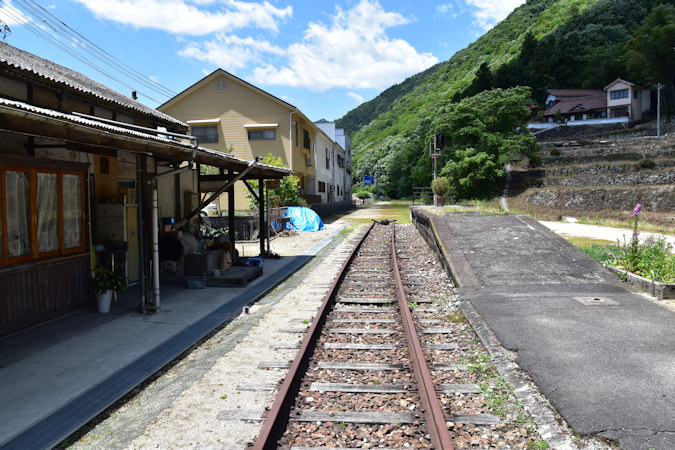 2003(平成15)年12月1日に廃止された可部線非電化区間の駅。廃止時は可部〜三段峡間では加計駅と並んで行き違い可能な駅で、1面2線のホームと留置線を持っていました。駅舎は平屋建て。写真は2017(平成29)年6月2日に撮影したものですが、駅名票もそのまま、線路とホームも一部残され、未だに現役のような雰囲気を保っています。