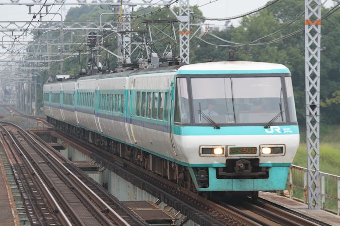 南田辺駅を通過する283系特急「オーシャンアロー」。現在は愛称を「くろしお」に統一。