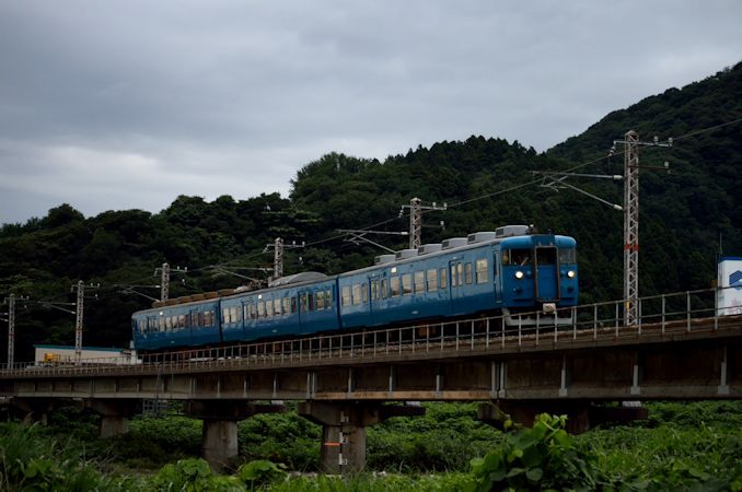 倶利伽羅〜津幡間。クハ455形700番台を組み込んだ413系。