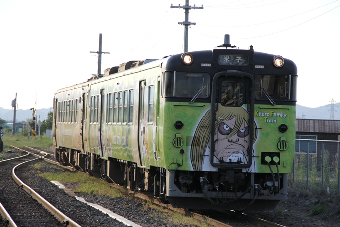 大篠津町〜米子空港間を走行する「ねずみ男列車」。