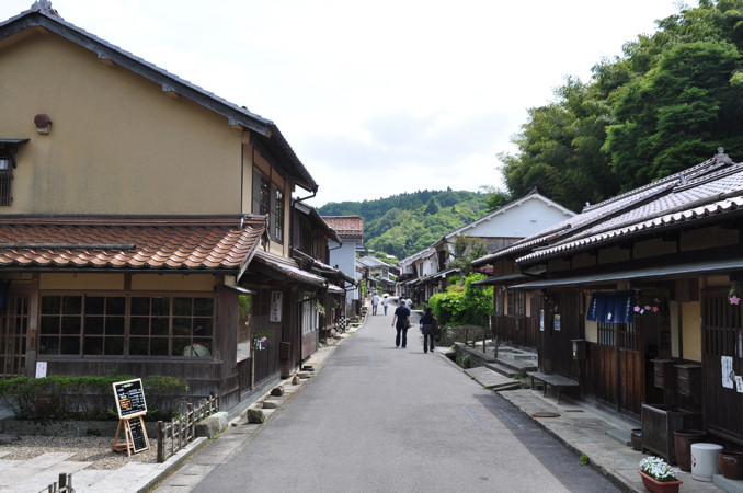世界遺産「石見銀山」へは大田市駅から路線バスで。古い町並みも残っている。