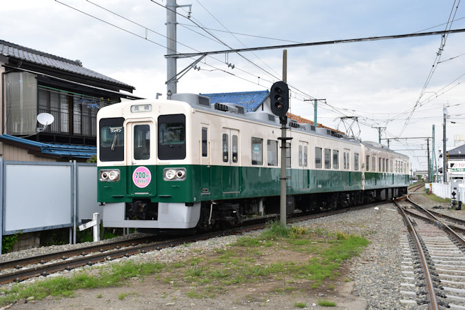 高崎駅を出発する上信電鉄オリジナルの新製車両7000系。