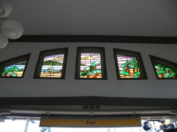 南海本線の駅で、上りホームと下りホームが踏切をはさんで向かい合っている千鳥式配置の単式2面2線のホームを持つ。開業時の駅舎は現在の東駅舎付近に建てられていたが、上りホーム用の駅舎(通称「西駅舎」)は1919(大正8)年に移転。これにより、上写真の建てられた木造平屋建ての約48uの小さな駅舎が建設されている。 最大の特徴は入り口上部に、浜寺から淡路島にむかっての海岸の様子を描いたステンドグラス5枚がはめ込まれていること。大正ロマンを感じさせる駅舎で、1998(平成10)年に国の登録有形文化財に指定。現在は2028(令和10)年ごろ完成を目指し、南海本線の高架化工事が開始されたことに伴い、2020(令和2)年2月に曳家によって若干移動し、交流スペースとして公開されている。