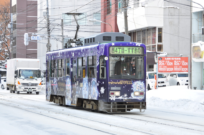 西4丁目〜西8丁目を行く、雪ミク電車2014