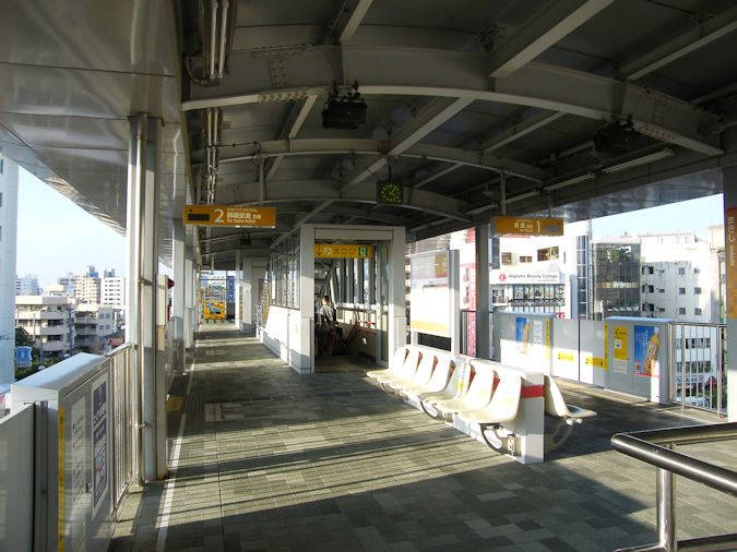 那覇空港駅。那覇空港と直結した沖縄都市モノレール(ゆいレール)の起点駅で、鉄道の駅としては日本最西端駅、および日本最南の空港駅でもある。ホームは1面2線で、ラッシュ時を除けば通常は1番線を使用している。