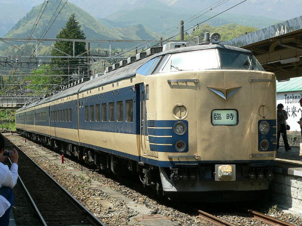旧・新特急「谷川」のマークを受け継いだデザインが印象的な、183系による臨時特急「水上」。185系もこのマークに変えてしまえばいいのに(笑)。