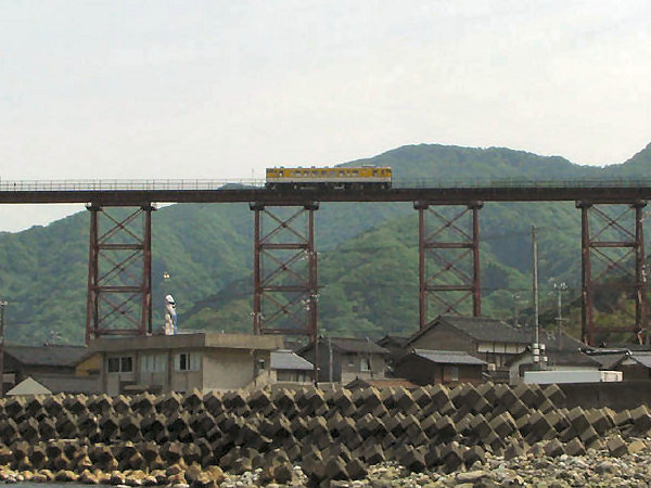 間もなく行われる架け替え工事によって、いよいよ伝統の餘部鉄橋の姿も見納めへとカウントダウンが始まっていますが、2005年のゴールデンウィークには、同橋を色々な車両が通過し、私たちの目を楽しませてくれました。ちゃけ様が撮影してくださったので、御紹介致しましょう。