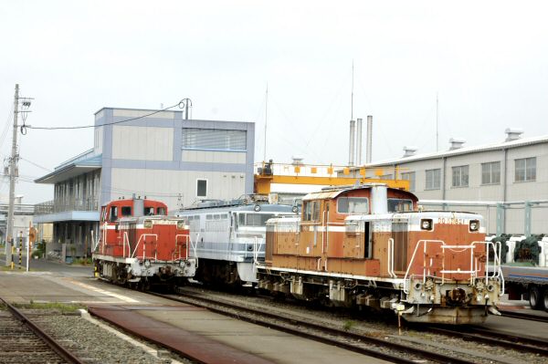 DE10とDD51・EF65をシャトルバスから撮影しました。DD51とEF65は廃車体です。このEF65はユーロライナー色の105号機でした。