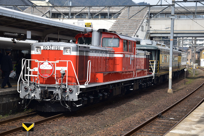 2017(平成29)年3月18日から20日にかけて、DD51 1191と「サロンカーなにわ」5両を使用した団体臨時列車「サロンカーなにわで行く山陰への旅」が大阪〜米子間で1往復運転されました。往路は「だいせん」、復路は「出雲」のヘッドマーク及びテールマークが掲出されています。(撮影:ひょん君 ※特記を除く)