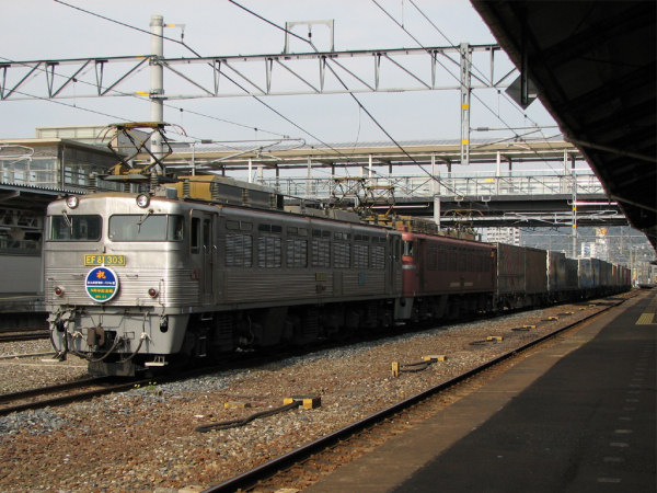 3月4日、「北九州貨物ターミナル開業5周年」イベントが開催されました。 各種電気機関車の展示や、金太郎(EH500-49)の運転席一般公開、貨物の荷下ろしで使う「リフター」の室内見学や、ターミナル内をマイクロバスで移動するツアーなどが行われたほか、前日の昼は、記念ヘッドマークを取り付けた貨物が走行しました。(撮影:小田急3000形さま)