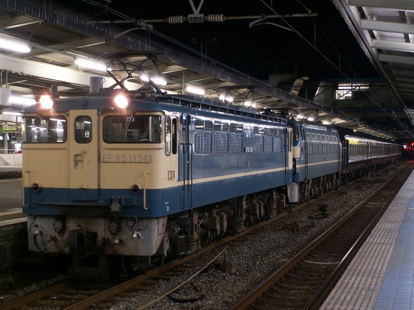おまけ。EF65形とEF66形の重連も、そこに「SLやまぐち号」用客車が連結されるのも珍しい光景でした。(山陽本線 広島駅)