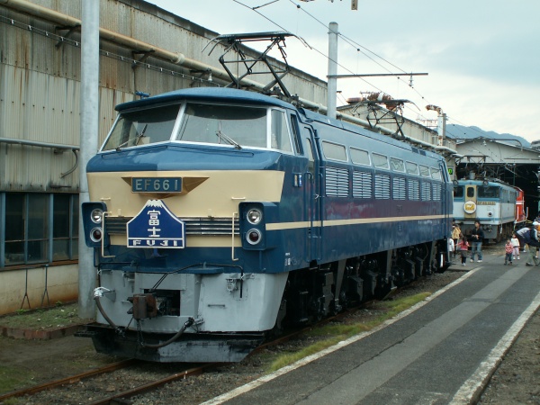 こちらも引退したEF66 2。片隅に展示されていましたがしっかりと「富士」ヘッドマークを掲出。
