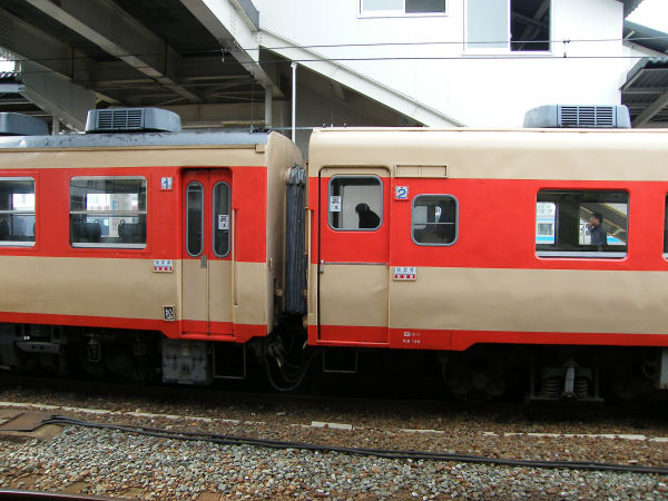 ところで、キハ58形とキハ65形はデザイン的にはかなり異なっています。連結部分で比較すると、ほらこのとおり。