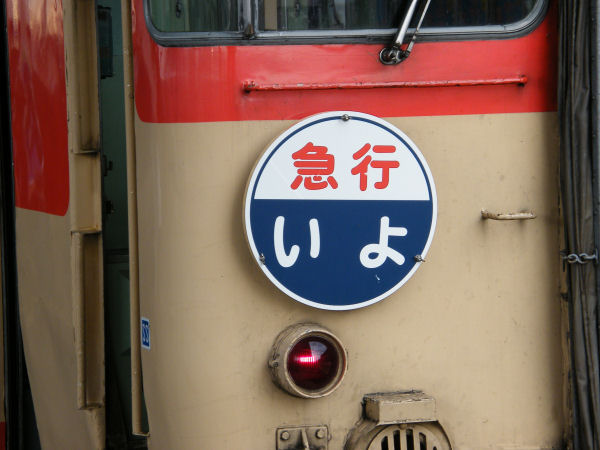 宇和島方のキハ65形には、最初は「さよならキハ58・65」ヘッドマークが取り付けられました。