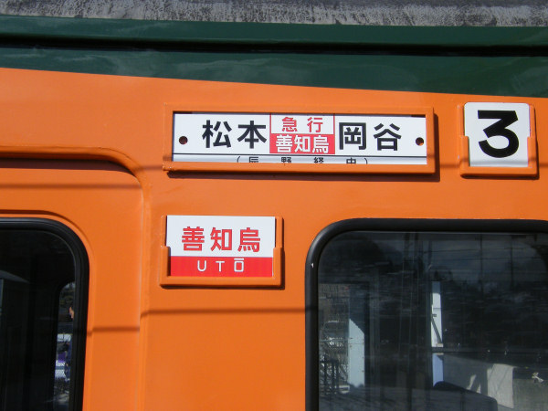 2009年1月10日と11日、しなの鉄道169系湘南色を使用してJR篠ノ井線、中央本線の松本〜岡谷にて急行「善知烏」号がリバイバル運転されました。これはJR東日本長野支社・しなの鉄道共同企画169系湘南色で行く信州の旅シリーズ(全5回)のうち第3回目のイベント列車で、岡谷までとはいえ、久しぶりに湘南色の急行電車が中央本線を快走してくれました。