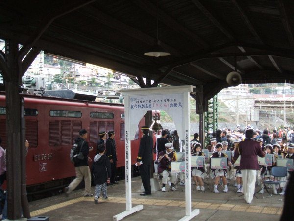 推進運転で入線する「さくら」。久々のテールマークは色あせも無く、現役当時のままでした。