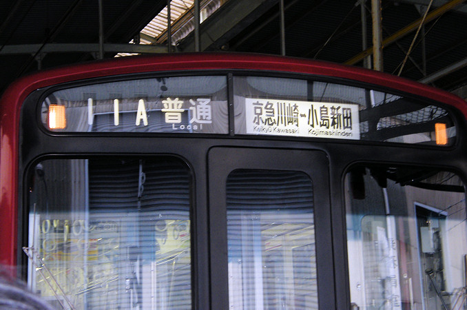 一見するとあり得そうな「普通 京急川崎 小島新田」だが、列車番号の末尾「A」は京急線内の快特、ウィング号を表すため、これまたあり得ない表示に。