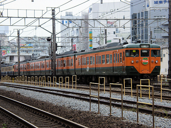 東海道本線の茅ヶ崎駅へ入線する113系。