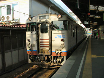 14時54分。2両編成と身軽なディーゼル特急で、山陽本線、智頭急行、山陰本線などを経由し鳥取へ。