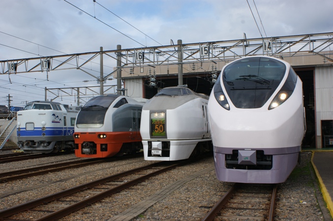 2011(平成23)年11月12日、JR東日本勝田車両センターにて「勝田車両センター50周年ふれあいまつり」が開催されました。展示車両は最新鋭のE657系K1編成をはじめ、651系K105編成、E653系K351編成、485系K40編成(クハ481−345のみ)と特急車のみで構成されていました。また、車庫内には485系「リゾートエクスプレスゆう」が乗車体験用に展示されていました。