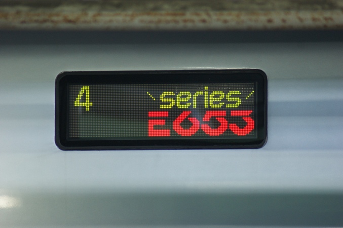 E653系の側面表示機。なにやら珍しい表示を出していた。