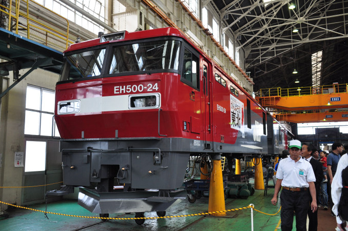 EF80 36号機、EF60 510号機、EF65 535号機が並べて展示。
