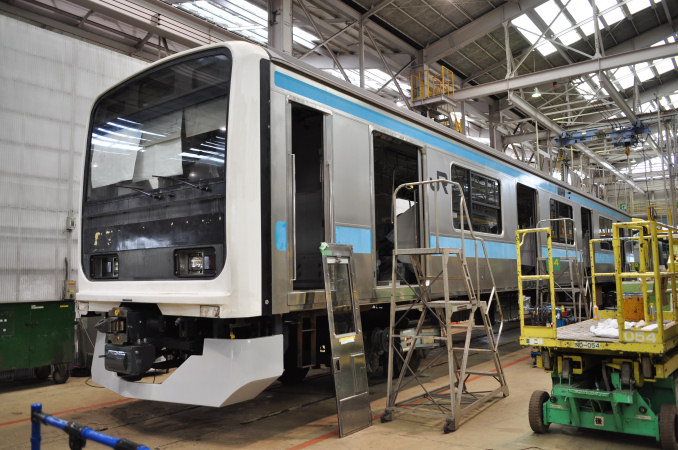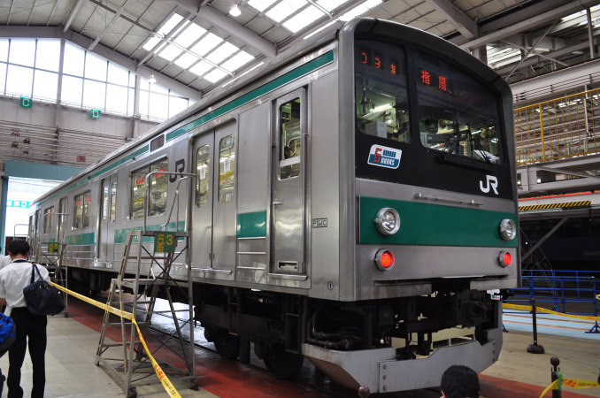 改造中の209系。京浜東北線時代の前面帯が外され、ブラックフェイスに。