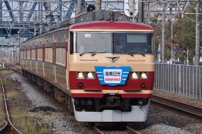2012(平成24)年10月6日、小田原〜日光間で185系OM08編成(157系風塗装)を使用した団体臨時列車「湘南日光号」が運転されました。これは、10月1日に現在の日光駅の駅舎が築100周年を迎えたことを記念したもので、かつて伊東〜日光間を結んでいた準急「湘南日光」をイメージした姿が再現されました。