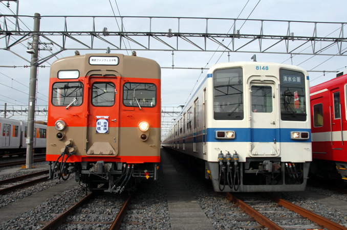 2012(平成24)年12月2日、東武鉄道の南栗橋車両管区で毎年恒例の「東武ファンフェスタ」が開催されました。今年は旧塗装に復元された8000系8111Fや、リニューアルされた100系などが並んでいます。
