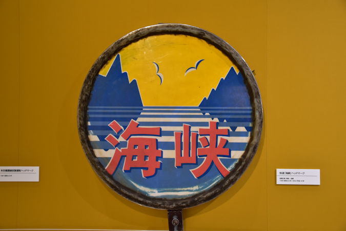 JR発足を祝したヘッドマークが一堂に展示。なんと約2年間、全国を捜索し探し出したのだとか。