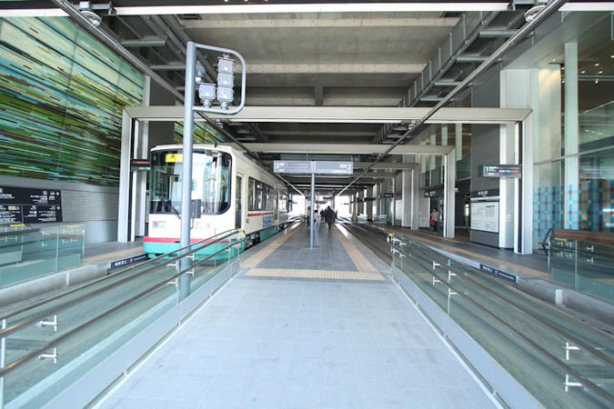 富山港線へはTLR600形「ポートラム」、9000形「セントラム」、T100形「サントラム」の 低床車両のみが乗り入れ、7000形と8000形は富山駅で軌道線方面に折り返す運用に充てられています。富山駅停留所は富山港線の富山駅北停留所を統合し、南側に軌道線方面の乗降ホームを、北側に富山港線方面の乗降ホームをそれぞれ設けています。