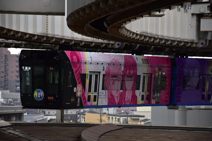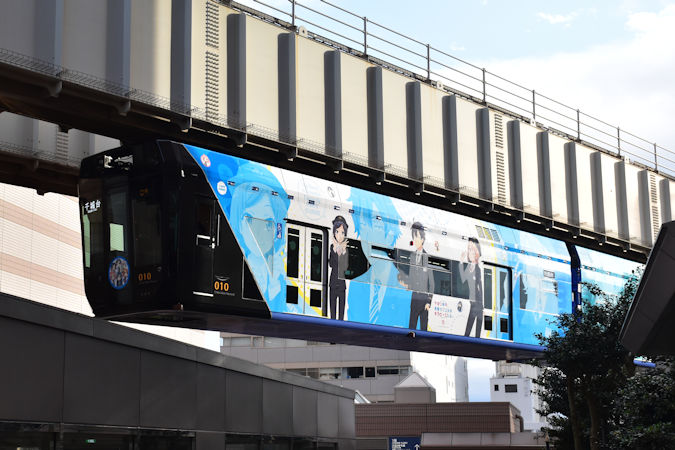 千葉都市モノレールでアニメ「やはり俺の青春ラブコメはまちがっている。完」ラッピング列車運転中