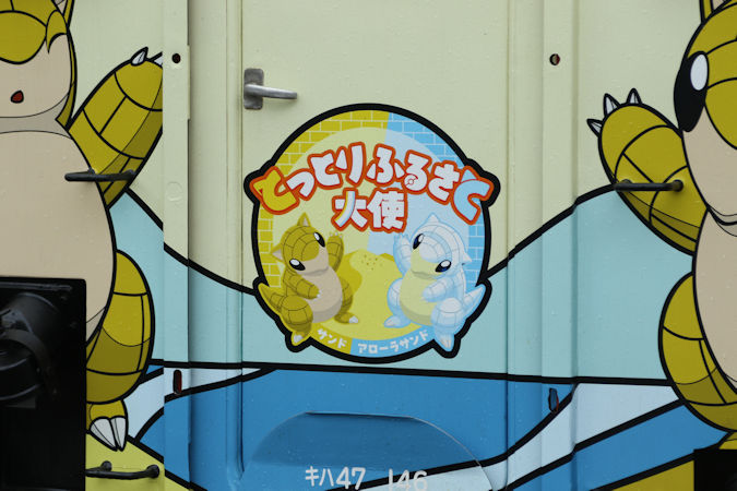 2024(令和6)年3月10日から、キハ47 176とキハ47 1025が鳥取県の「推しポケモン」である「サンド」「アローラサンド」をラッピングした「とっとりサンド列車」となって運転されています。主に山陰本線豊岡〜米子間、因美線鳥取〜那岐間にて、2028(令和10)年3月末まで運転予定となっています。