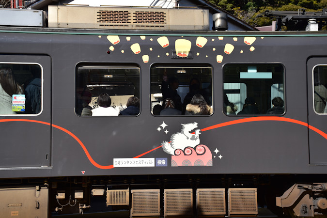 2024(令和6)年12月4日(水)〜2025(令和7)年3月3日の予定で、江ノ島電鉄1000形1501-1551編成を用いた台湾観光特別ラッピング電車「ビビビビ!台湾ランタンフェスティバル号」が運転されています。外観にはカラフルな「ビビビビ!台湾」のスローガンを前面に、車体の上部に天燈上げをモチーフとした夜空を舞う鮮やかなスカイランタン、下部には台湾最大規模の光の祭典「台湾ランタンフェスティバル」をイメージし、2024年のメインランタン「龍來台灣(台湾に龍がやってくる=すべての幸運・お客様がやってくる)」をデザインしたロゴを配したほか、台湾観光庁の新ロゴ「TAIWAN Waves of Wonder」(台湾魅力・驚き無限)をイメージした輝く朝日のオレンジ色をあしらったウェーブをアクセントとしています。